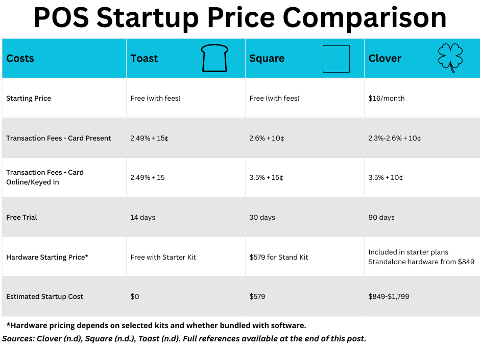 Delivisor. (2025, August 10). Toast vs. Square vs. Clover: Which POS is right for your restaurant? Delivisor. https://delivisor.com/blog/toast-vs-square-vs-clover-which-pos-is-right-for-your-restaurant/